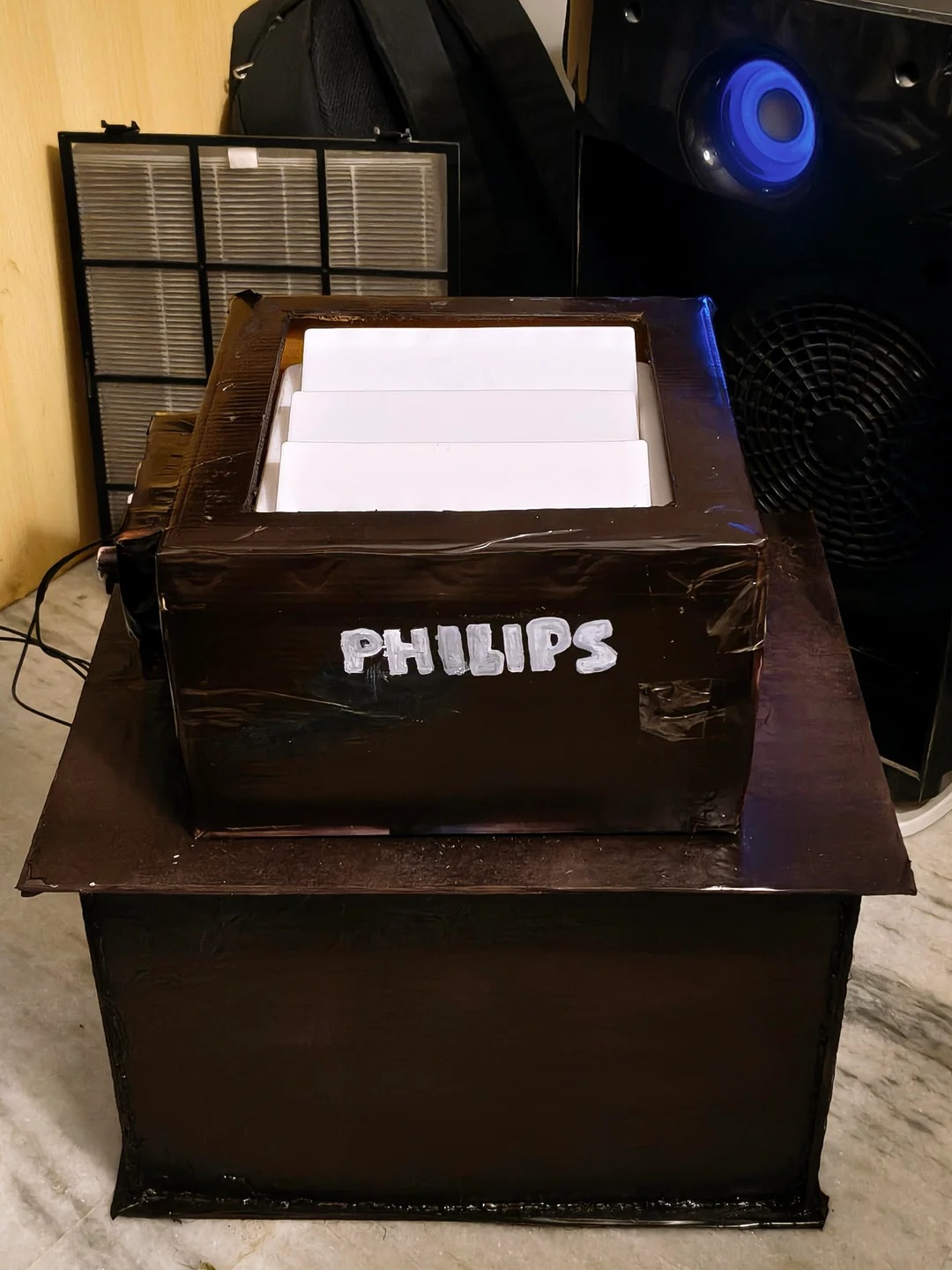 The exhaust fan pulls air through the HEPA filter, removing particulate matter (PM2.5/PM10) and some finer dust. The relatively high airflow (due to fan size + filter surface) means a large volume of air is cleaned in a short span, contributing to the rapid AQI drop. By maintaining minimal fan spee,d the builder also suggests it’s feasible without unmanageably high noise or power consumption.