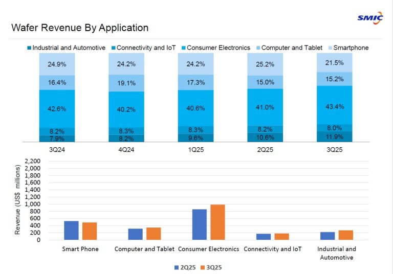 China’s largest foundry, SMIC, revealed a surprising twist in its latest earnings update: while its third-quarter revenue rose, the smartphone segment fell to 21.5 % of its business from 25.2 % in the prior quarter. The company attributed this drop partly to memory-chip shortages that are forcing smartphone manufacturers to hold off on placing new orders for early 2026. According to the report by TrendForce Corp., this cautious behaviour is an unusual turn for a device category typically driven by forward-planning and high volume.